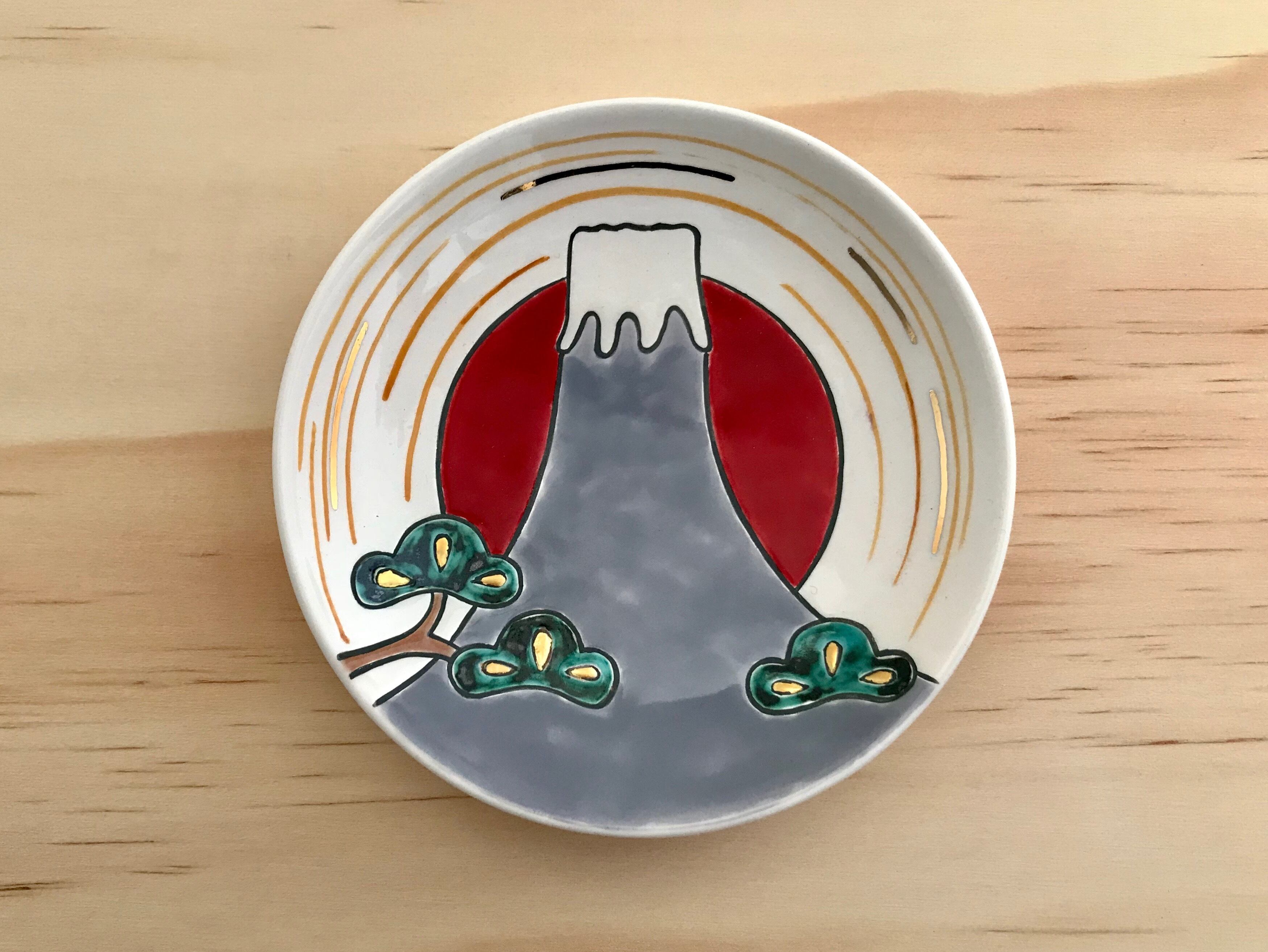 クエルダセカという技法をも用いて描いた富士山と、お正月らしい青松を組み合わせたデザインです。