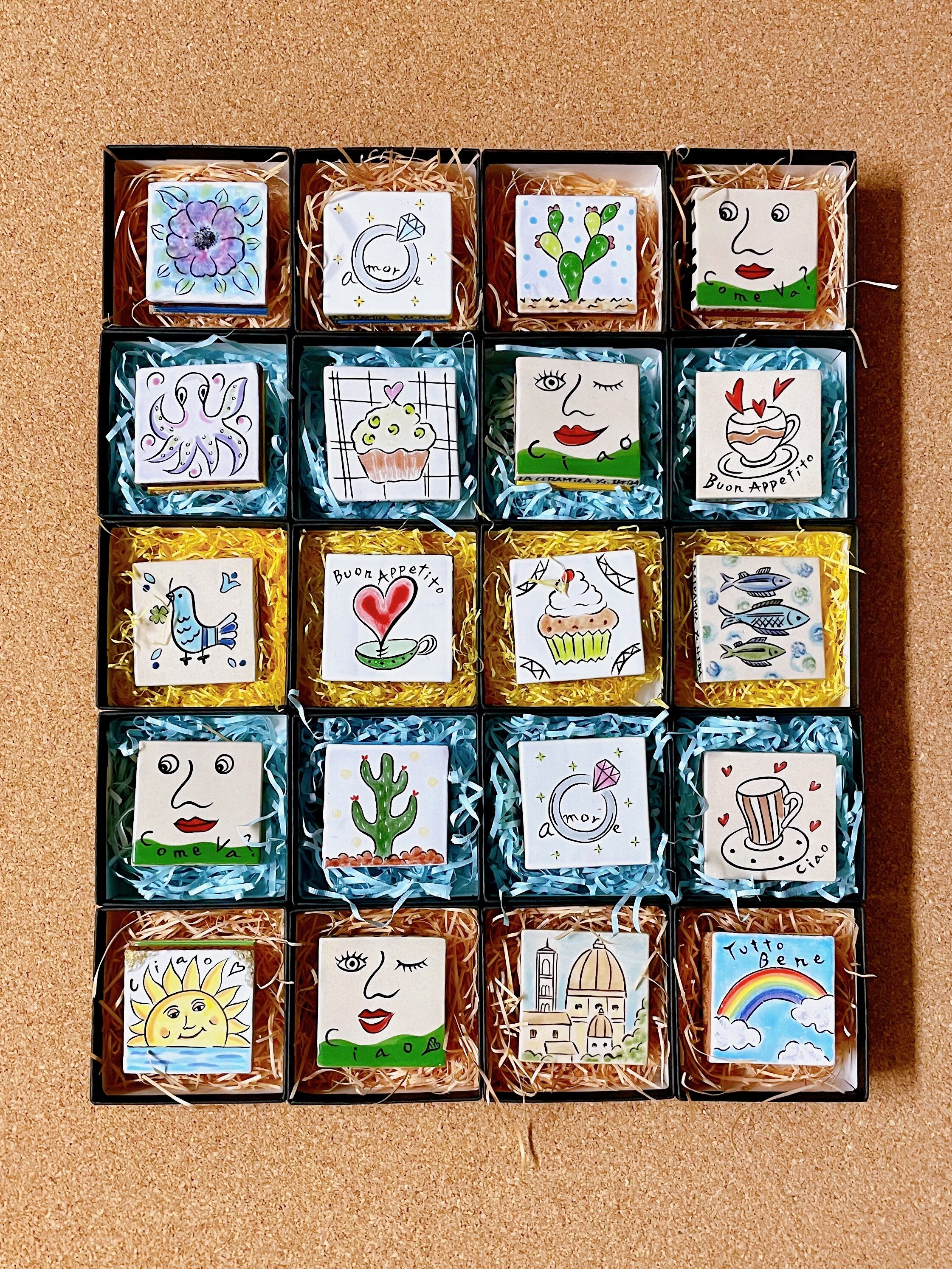 メッセージを受け取った後は、そのまま飾ったり、タイルの部分だけを壁掛けにしたり、マグネットにしたりなど、お好みで楽しめます。