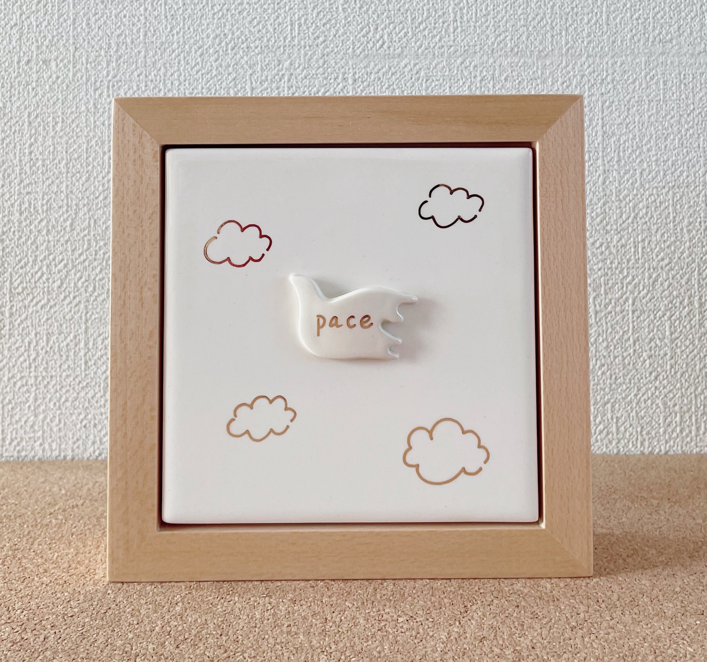 スタンドのように立てて飾ることも、壁掛けとして飾ることも可能です。